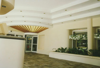|  Windward Church Exterior elevation, computer model and section of church in design development for windward Oahu. | Kaneohe Residence Residence remodel for a bayfront house located facing Kaneohe Bay in windward Oahu, Hawaii. |  | Kaiser Regional Headquarters 40,000 sq. ft two-story regional corporate headquarters for a major medical service provider consisted of nine separate departments and executive offices. Interstitial space between first floor ceiling and second floor utilized as horizontal cable ladder to link networks. Project included all furnishings with Herman Miller open office systems. | |  | Kafe Kapena, Outrigger Hobron Hotel Designed to be hotel cafeteria by day and converts to include a dark bluepainted underwater themed nightclub complete with large aquarium tank via the opening of a sliding panel wall at night. | | | |